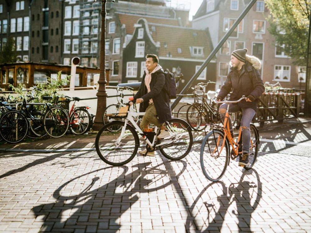 Голландцы настолько гордятся своей велосипедной культурой, что даже премьер-министр передвигается по Амстердаму на велосипеде. Чтобы почувствовать себя настоящим голландцем, возьмите напрокат Omafiets (велосипед в голландском стиле) и отправляйтесь на нем в поездку по Амстердаму. Во многих отелях предлагаются велосипеды напрокат. В число вариантов жилья, где особо заботятся об осознанном туризме, входит отель Conscious. Подходы устойчивого развития, которые применяют в этом отеле, перечислены на небольших бирках и табличках. Отель расположен рядом с парком Вондела.