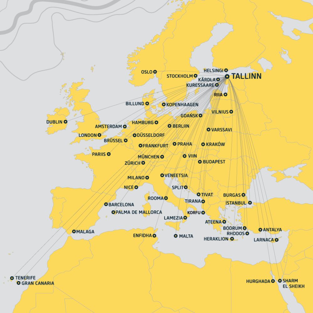 Этим летом из Таллиннского аэропорта можно будет отправиться прямыми рейсами по 52 направлениям — билетов в продаже на 18% больше, чем в прошлом году. Добавятся восемь новых направлений: Афины, Дюссельдорф, Гданьск, Гамбург, Рим, Тирана, Варшава и Вена.