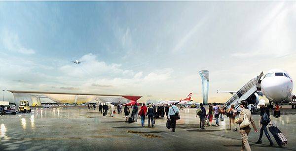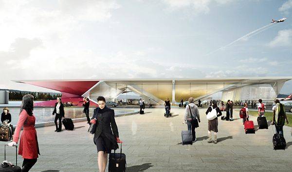 Отдельно стоит отметить башню управления полетами, которая будет возвышаться над терминалом. Эта конструкция, высотой в 55 метров, выглядит невероятно легкой, а ее линии, словно закрученные вокруг центральной оси, делают ее похожей на столб воздушного вихря. По заявлениям создателей, цвет башни сможет изменяться в зависимости от загруженности трафика.