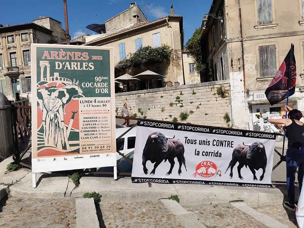 В Арле проходит коррида. Настоящая, с убийством быков. Когда мы приехали, активисты развернули плакаты, на которых написано всё, что они об этом думают. Они требуют прекратить убивать животных, и я с ними солидарна, коррида — жестокое развлечение…