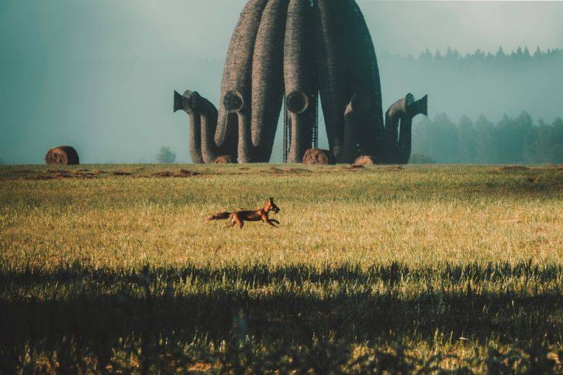 Ко времени первого «Архстояния» по парку уже были разбросаны многочисленные инсталляции самого Полисского и его соратников – московских художников и архитекторов. Творения удивляют масштабами, причудливыми формами, гармонией с местностью. Впечатляет и сама природа с рекой и среднерусским ландшафтом – эта территория входит в состав национального парка «Угра».