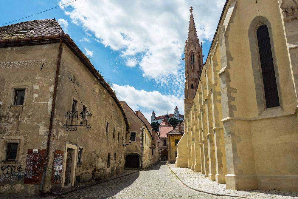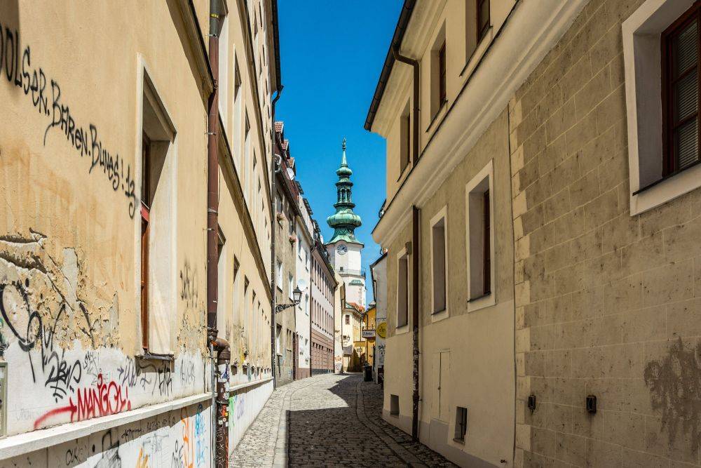 А ведь в погоне за новыми открытиями мы, бывает, упускаем из виду такое понятие, как «шарм». Братислава – то самое место, которое обладает своим особенным шармом, каким-то едва уловимым очарованием. Старый город Братиславы – такой типично европейский, средневековый, с одной стороны, и такой непохожий на другие «старые города», с другой. Он относительно небольшой, его легко обойти «от» и «до» за пару часов, и ещё успеть насладиться кофе с мороженым. Но всё же не настолько, чтобы сильно наскучить. Разнообразия там хватает: неплохо сохранившиеся здания, разноцветные и разнообразные, отреставрированные фасады, обветшалые постройки, хаотично расписанные «уличными художниками» – всё перемешалось на этом небольшом клочке земли.