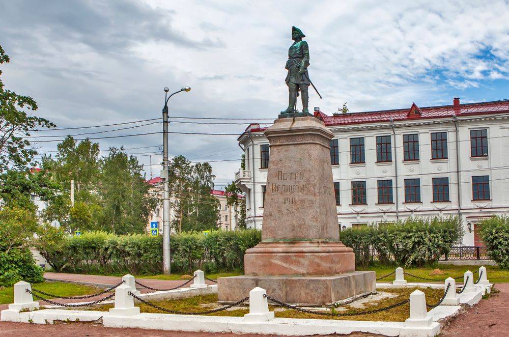 Ехать в Архангельск советуем с пятисотрублёвой купюрой в кармане, чтобы сделать эффектное фото с памятником Петру I. Он стоит в сквере на берегу Двины. Памятник императору в городе воздвигли не случайно. Он трижды приезжал в Архангельск, чтобы прорубить «окно в Европу». Скульптура была отлита во Франции в мастерской скульптора Антокольского. Есть легенда, что поморский градоначальник Яков Лейцингер приобрёл бронзового императора для Архангельска по акции.