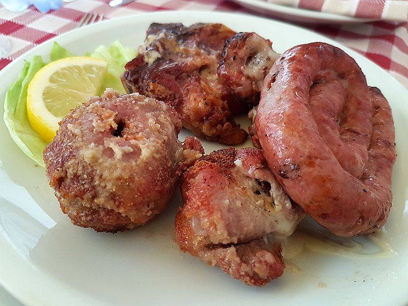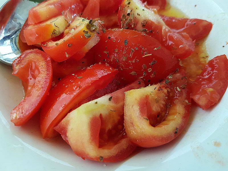 Мы решили пообедать в этом городке и попробовать местные мясные деликатесы. Но сначала — итальянские помидоры. Это очень вкусно)