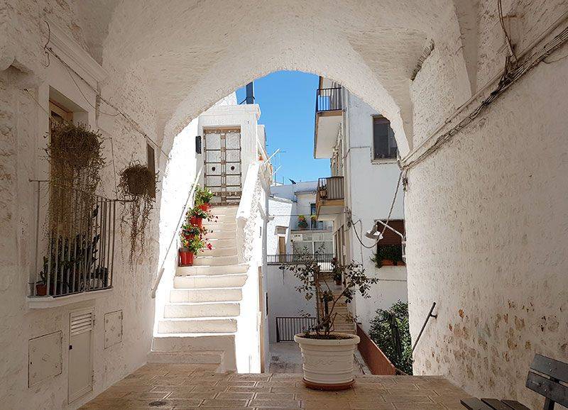 Один из красивейших маленьких городков Апулии носит кокетливое название Мартина Франка. Отчего-то хочется думать про этот город «в женском роде», хотя назван он в честь святого Мартина. Мартина Франка — очень нарядный городок, и после деревень, по которым мы проехались, поражает его ослепительная белизна и изящные здания в стиле барокко. Городок, точнее, его исторический центр можно обойти за час. Вот они — белоснежные улицы города Мартина Франка. Сразу вспоминаю июньское путешествие по белым деревням Андалусии. Тут также чистенько и ухоженно — жители любят свой город.