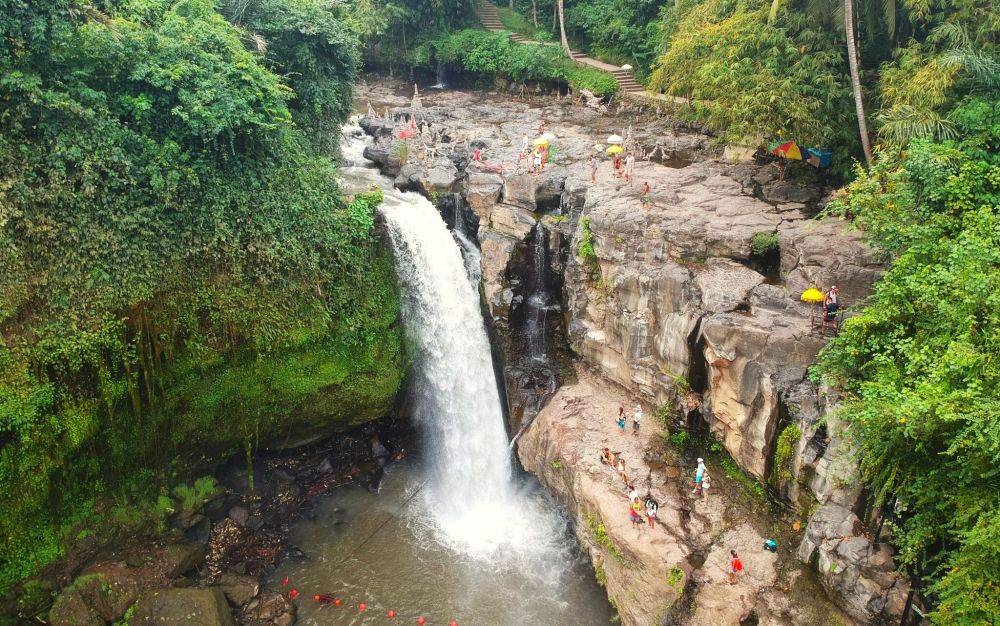 Tegenungan — это один из самых доступных и популярных водопадов Бали, расположенный недалеко от Убуда. Потоки воды обрушиваются с высоты, создавая мощное облако брызг. Отличное место для купания и фотосессий в окружении джунглей.