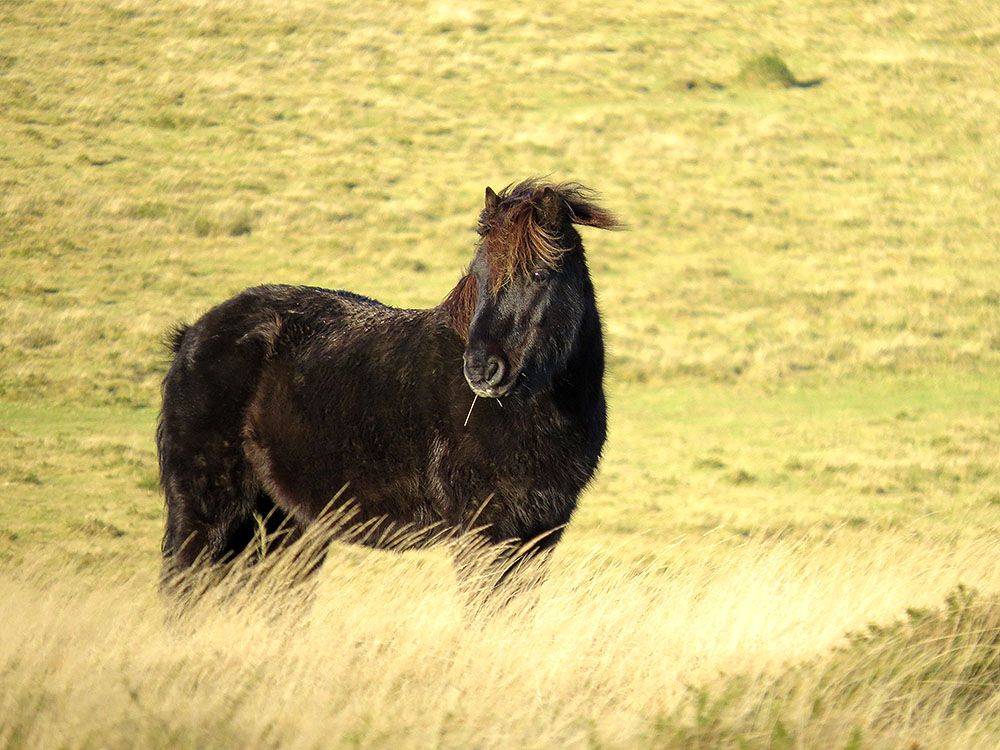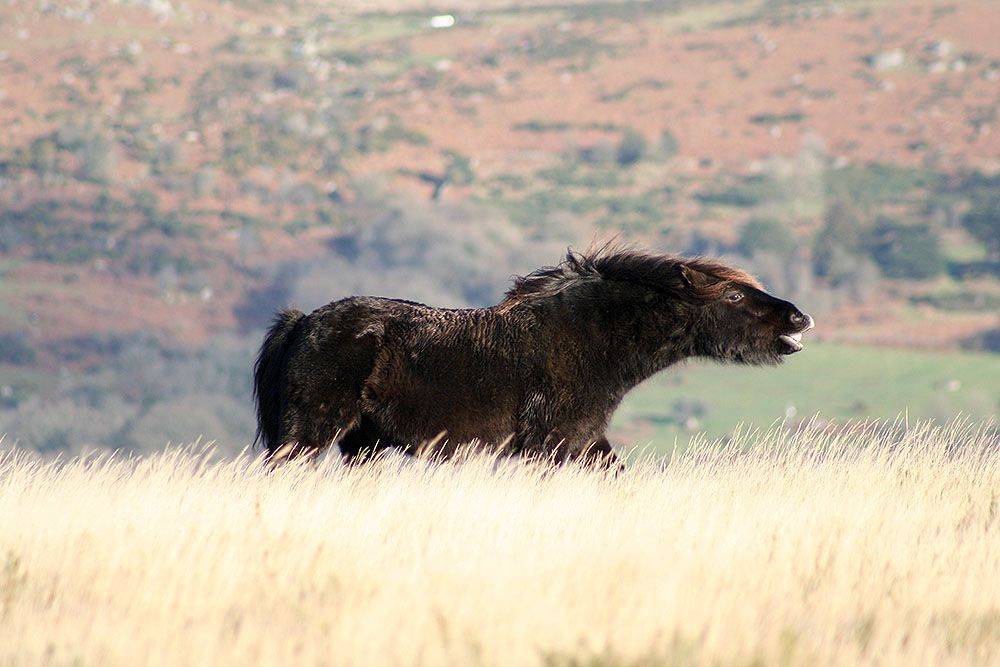 Черный, мохнатый, с растрепанной на ветру густой гривой. Он смотрел на нас, а потом пошел в поля. Мы остановили машину и двинулись следом. Так мы и добрались до целой компании разноцветных дартмурских пони, которые паслись в нескольких метрах от дороги.
