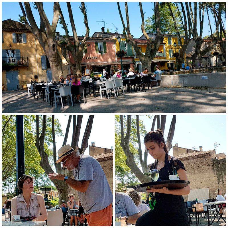 Тут много всяких кафе. Мы прибыли сюда около десяти утра, и многие столики в кафе были заняты. Люди пили кофе и вино — белое и розовое:)