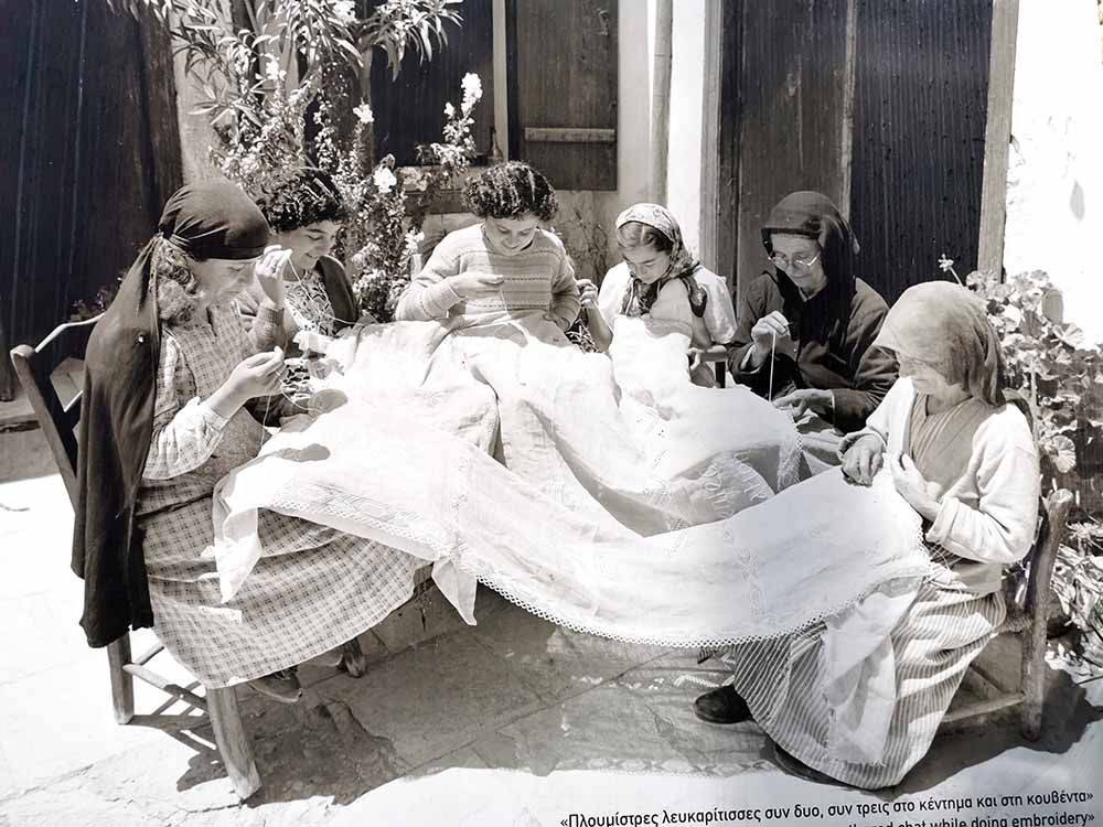 В Лефкаре так принято. По деревне развешаны старинные черно-белые фотографии мастериц – кружевниц. Местные кружева настолько знамениты, что техника даже получила название – Лефкаритика. Искусство передается из поколения в поколение. Существует легенда о том, что местные кружева увез с собой однажды сам Леонардо да Винчи, посетив Лефкару в 1481 году. Он купил кружево для главного алтаря Дуомо де Милано, а потом венецианцы скопировали его и наладили производство на острове Бурано…