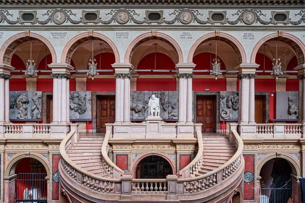 На улицеГороховой во дворе дома номер 57 находится, пожалуй, самое мистическое место Петербурга — подъезд обыкновенного коммунального дома, выполненный в виде изысканной ротонды с шестью колоннами, опоясанной извилистыми лестницами.