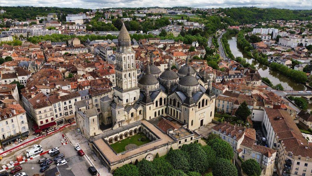 Доминантой города остаётся кафедральный собор Сен-Фрон с пятью куполами в византийском стиле — именно это строение когда-то вдохновило архитектора парижской базилики Сакре-Кёр. Внутри храма — фрески, витражи и старинные органы, а также люстра с историей: она когда-то украшала парижский Нотр-Дам во время свадьбы Наполеона и Жозефины. Недалеко от собора, на набережной, стоят дома XVII века — отель Сальтон, дом консулов и усадьба Ламбер. Не забудьте заглянуть к фахверковому домику Eschif, некогда ошибочно принятому историками за мельницу.