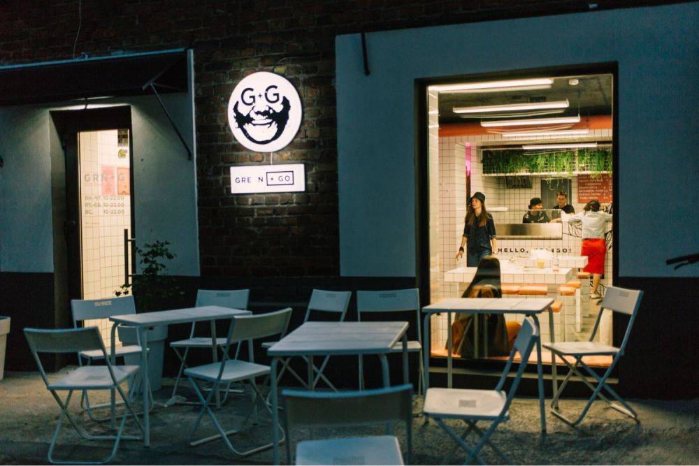 Многие узнают Green+Go по необычному интерьеру – много белой плитки, неона и сочные заросли комнатных растений. Впрочем, сочные не только заросли, но и местные блюда. В огромном меню есть сэндвичи и роллы (фалафель и веган-шаурма), смузи и боулы, супы и закуски, а также десерты – кстати, такие же, как и в Nova Stolova,. Отдельной популярной позицией