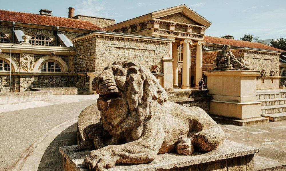 Пройти мимо этого здания не получится — его внешний вид больше напоминает здание Сената в Древнем Риме. Лечебницу построили в начале XX века, чтобы поддерживать хрупкое здоровье цесаревича Алексея. Все процедуры здесь основаны на целебных свойствах иловой грязи, которую привозят с озера Тамбукан. Чтобы записаться на грязевые процедуры, потребуется направление врача.