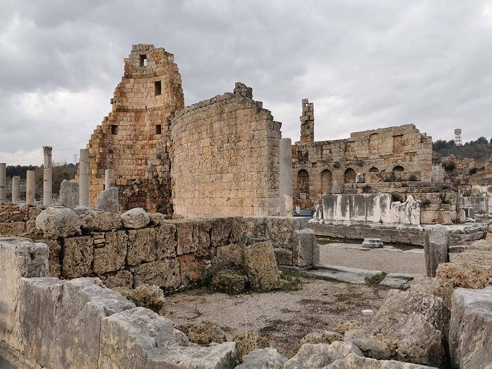 Считается, что Перге основал прорицатель Калхас после Троянской войны. Чтобы город не подвергался набегам с моря, его построили в одиннадцати километрах от морского побережья. Он переходил то к лидийцам, то к персам, в 333 году до нашей эры сдался без боя Александру Македонскому, потом перешел под власть Рима… Именно тогда Перге достиг наивысшего расцвета. А упадок наступил в VII—VIII веках, после многочисленных набегов арабов. Город превратился в небольшое селение, а затем и вовсе исчез…