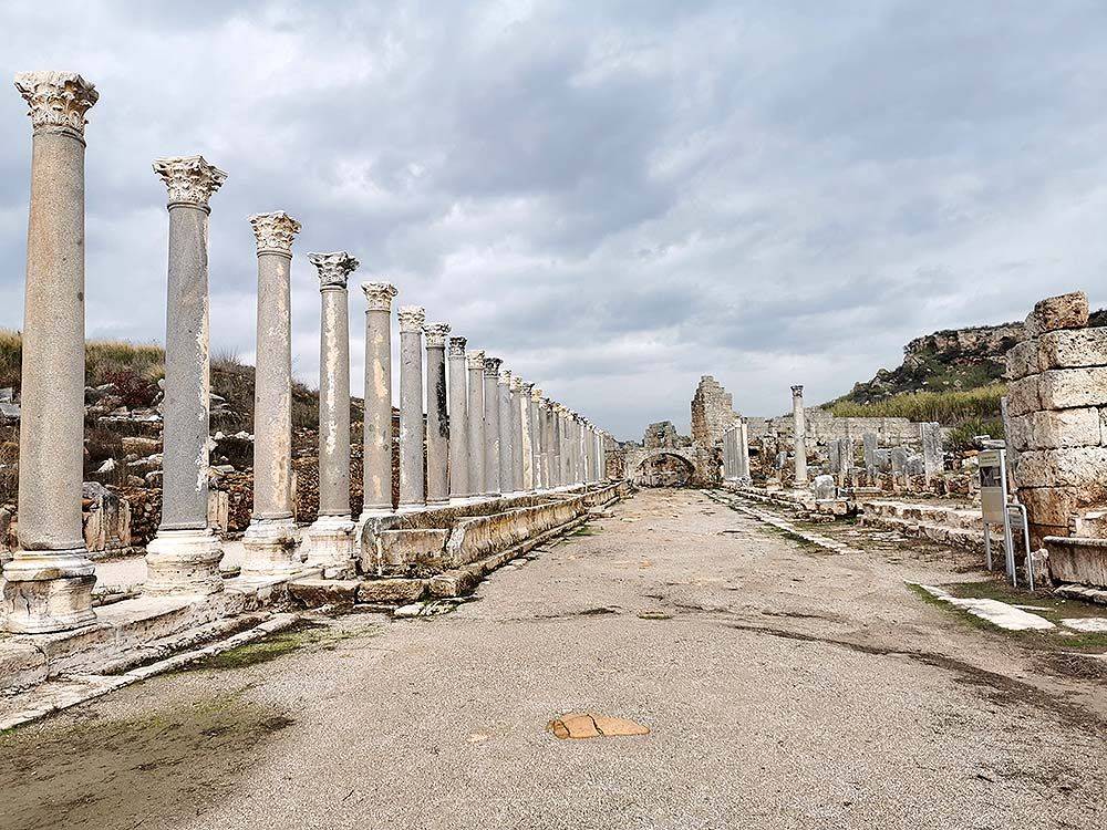 В Перге сохранились руины огромного стадиона, театра, нескольких базилик… Но, когда попадаешь туда, уже не так важно, что именно где находилось. Мне понравилось просто гулять по этим широким улицам с колоннами, представляя себе, что когда-то тут все было живым, шла активная торговля, ходили люди…