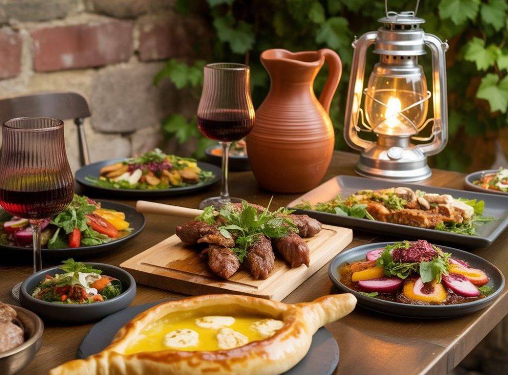Порции огромные, часто хватает одного блюда. На двоих мы обычно берём закуску и два основных — счёт редко превышает 45 GEL. Туристы в среднем тратят 50–60 GEL на пару в кафе средней руки. Бокал вина — плюс 7–12 GEL, бутылка — 25–70 GEL (домашнее дешевле в два раза). Рестораны с белыми скатертями в Тбилиси просят от 120 GEL за ужин вдвоём. Учтите сервисный сбор 10–18 %.