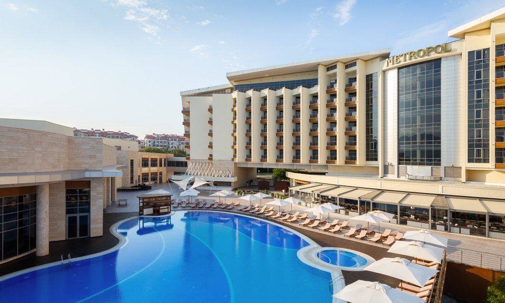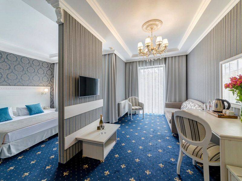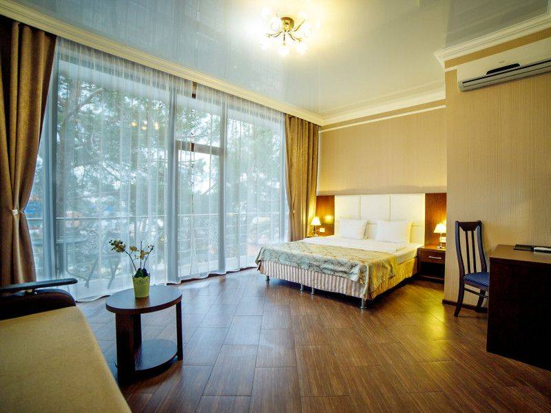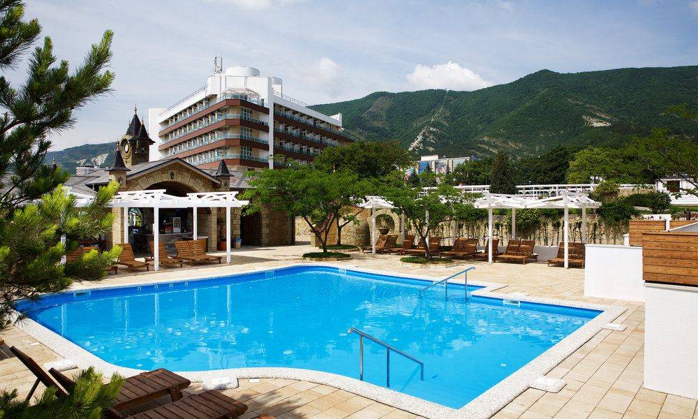 Безупречный сервис и всё, что нужно для роскошного отдыха — вот главная характеристика этого отеля. Он расположен на мысе Толстый, прямо на морском берегу в том месте, где начинается Геленджикская набережная. На территории есть несколько ресторанов, караоке-бар, аквапарк, два открытых и один крытый бассейн. Если не хотите прерывать занятия спортом, в вашем распоряжении будут фитнес-клуб, теннисный корт, поле для футбола или волейбольная площадка на пляже. Кстати, не все отели Геленджика с собственным пляжем могут похвастаться наличием VIP-зоны. Тут она есть. Здесь не будет скучно и маленьким гостям: пока родители купаются и загорают, их будут развлекать аниматоры. А ещё малышей и ребят можно занять в детском клубе.