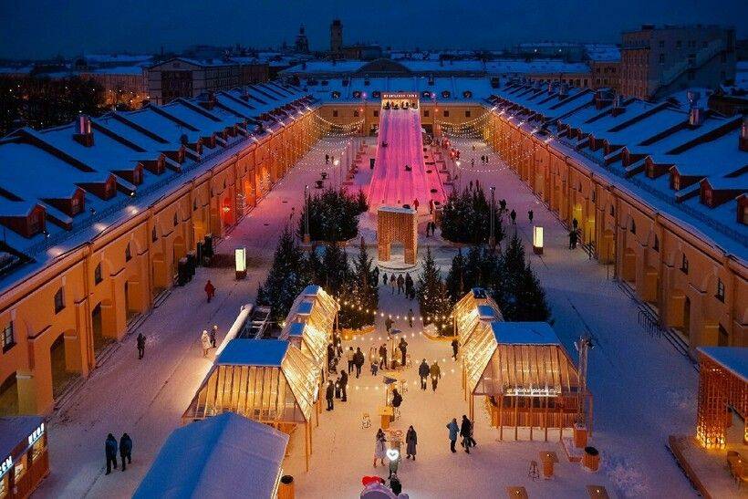 Когда в Санкт-Петербурге наступает период белых ночей, двор Никольских рядов становится площадкой для фестивалей кино и местом тусовок любителей виниловых пластинок. Сюда можно сходить на джазовый концерт, лекцию по истории, мастер-класс. К зиме пространство украшают гирляндами, переделывают амфитеатр под катальную горку, и территория становится местом зимних забав, где погулять в Санкт-Петербурге интересно с детьми.