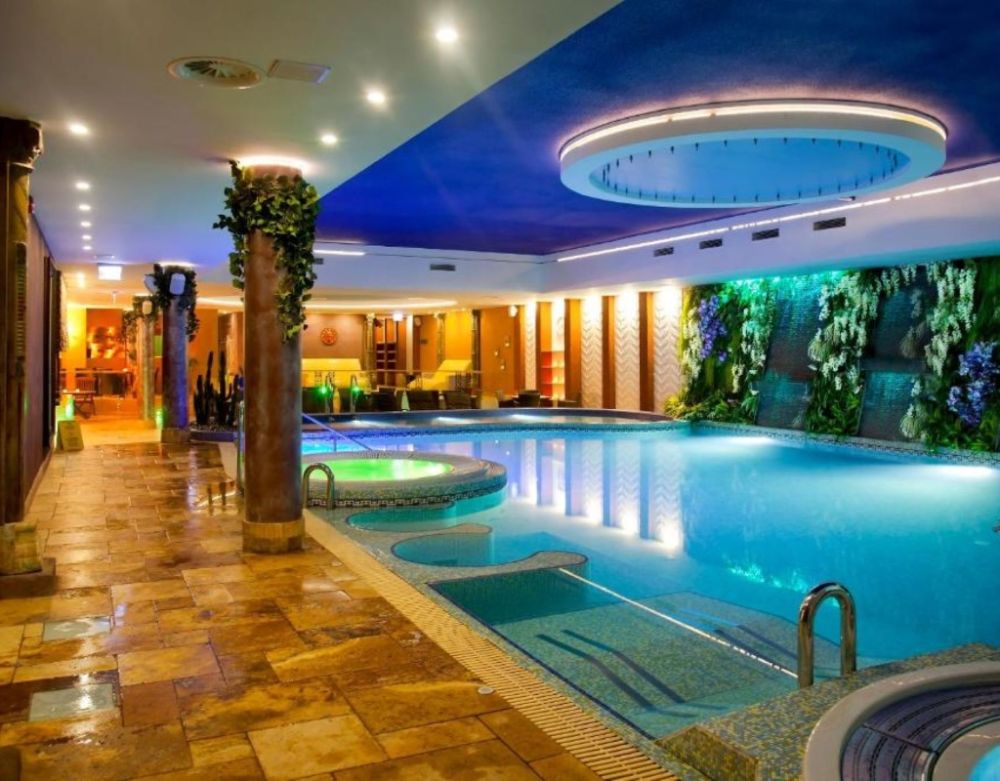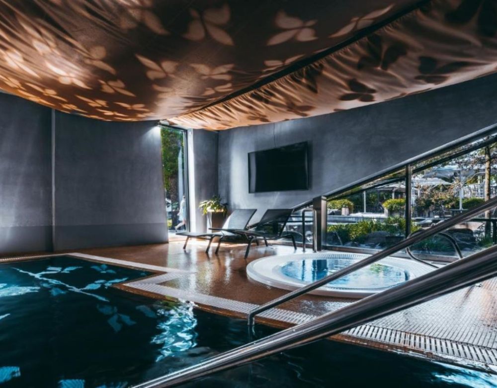 Этот вариант подойдёт тем, кто хочет, чтобы романтический уикенд ощущался чуть более «курортно». Ночь в дизайнерском номере здесь дополняется полноценной спа-зоной с разными типами саун и расслабляющими водными процедурами — всё в атмосфере спокойного островного отдыха.