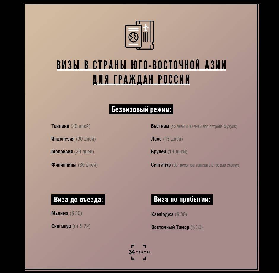 Юго-Восточная Азия – регион, по которому в буквальном смысле можно путешествовать бесконечно. Все благодаря достаточно лояльной визовой политике местных стран, упрощенному порядку подачи документов и множеству вариантов продлить пребывание прямо на месте. Разбираем, как оформить визы в страны ЮВА, где и на какой срок их продлить и куда виза совсем не понадобится.