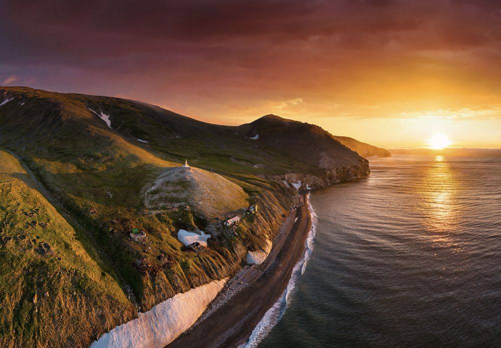 Итуруп — один из самых красивых островов Курильского архипелага. В списке мест, где нужно побывать, стоит с пометкой «обязательно» :) Белые скалы на фоне темно-серого песка, вулканы, океан, термальные источники, дымящие фумаролы… Это не картинки из документального фильма о планете — в путешествии вы увидите всё это своими глазами.