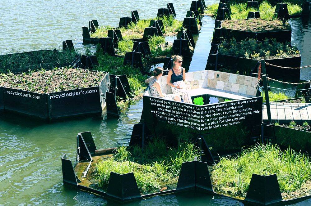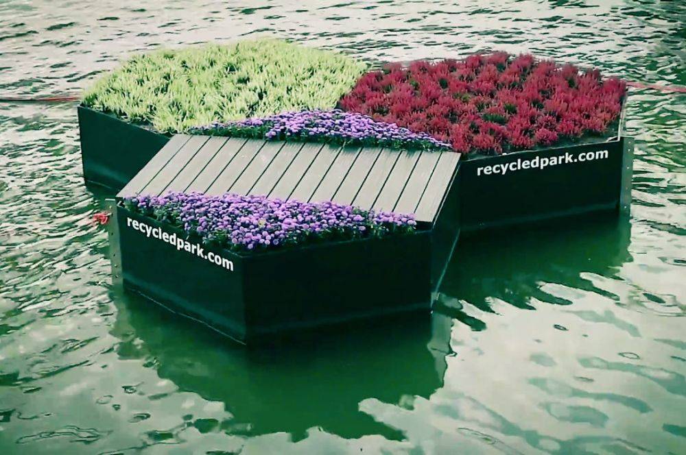 В Роттердаме на реке Ньиве-Маас появился плавучий парк Recycledpark из переработанного пластика. Это место – настоящее городское сокровище. Во-первых, плавучий парк – платформы с растениями и скамейками – необычное место отдыха в городской среде. Во-вторых, сами плавучие платформы сделаны из выловленного в реке и переработанного пластика. Платформы специально делают шестиугольной формы, чтобы парк можно было легко расширять, присоединяя новые блоки. Сейчас в плавучем парке 28 блоков, официально он открылся 4 июля.
