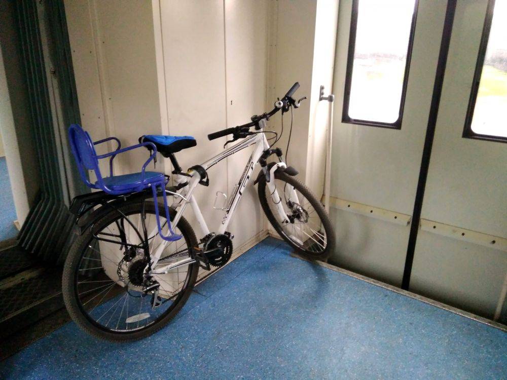 Велосипеды можно перевозить и в салоне электрички, но тогда байк потребуется разобрать, чтобы он превратился в ручную кладь. Плюсом данного метода является отсутствие необходимости оплачивать перевозку груза, если велосипед в сложенном виде не превышает определённые габариты.
