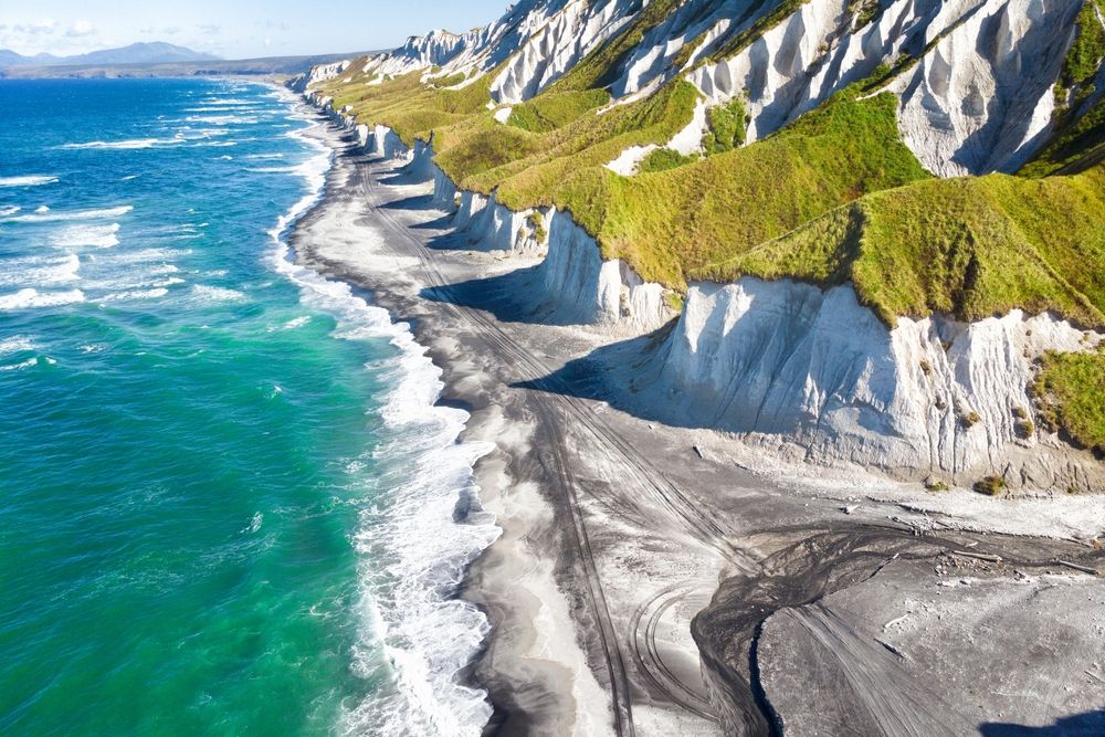 Есть острова, куда едут за обычным пляжным отдыхом, а есть те, что меняют ни много ни мало представление о мире. Итуруп — из второй категории. Оказавшись здесь, не сразу понимаешь, где заканчивается земля и начинается океан. Вокруг — дымящиеся вулканы, белоснежные скалы из пемзы, пенистые волны по несколько метров в высоту, разноцветные реки кипятка и пляжи с магнитным песком.