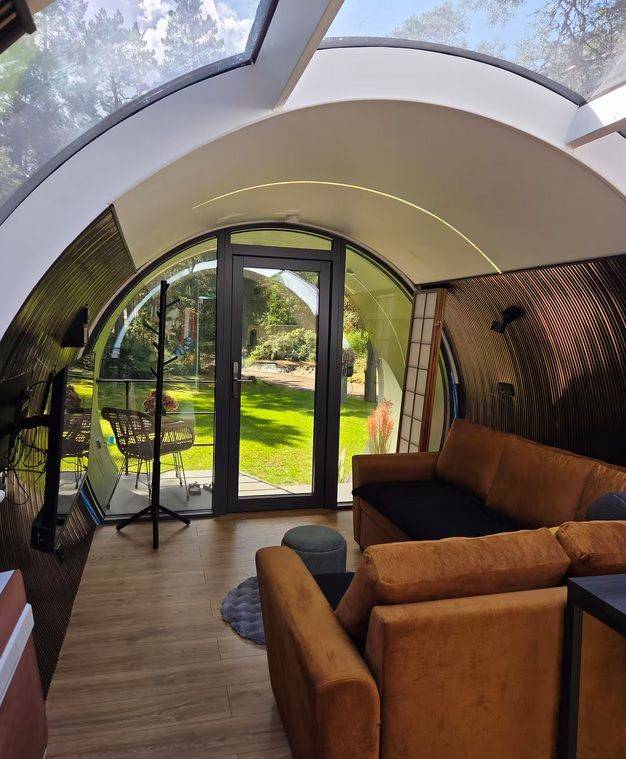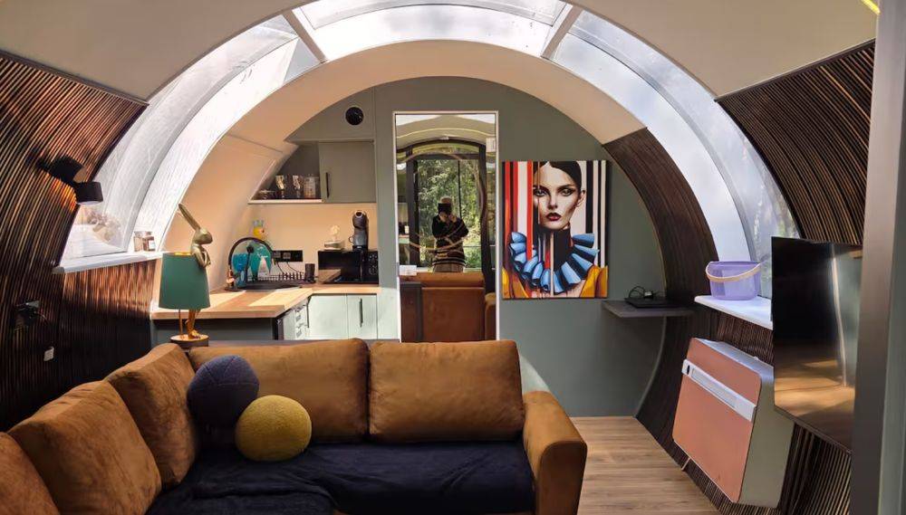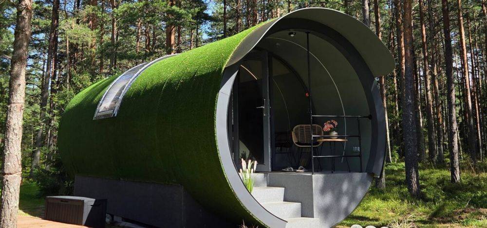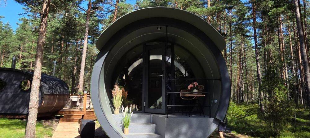 Если кто-то скажет, что отдых в Эстонии — это скучно, просто отправьте ему фото этого домика. Он похож на огромную футуристичную трубу, спрятавшуюся в хвойном лесу. Но как только вы заходите внутрь, понимаете: это маленькая вселенная для двоих, в которой всё продумано до последней детальки.