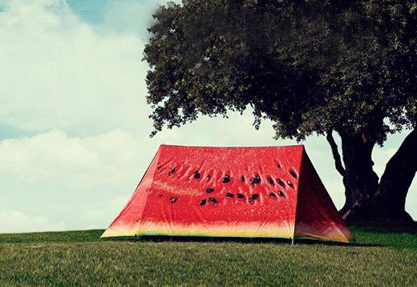 По версии Field Candy можно жить в арбузе, сыре, в окружении виртуальной компании туристов, нарисованных на твоей палатке, в шатре из леопардовой шкуры, в палатке, на которой нарисована целующаяся парочка и еще много-много невероятных вариаций.