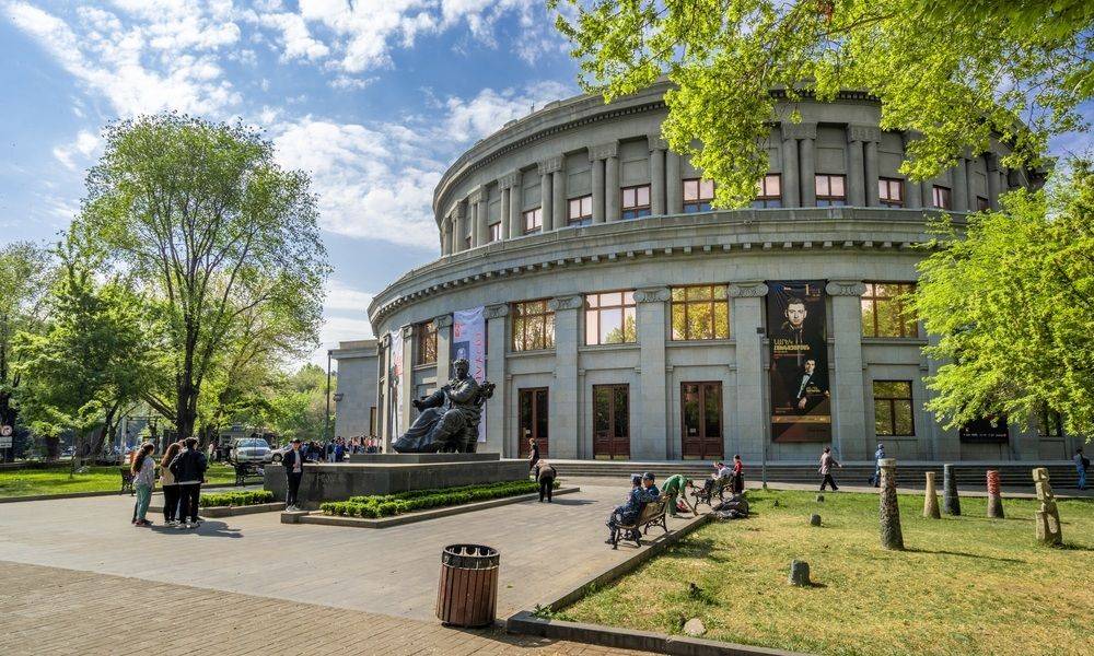 Самое узнаваемое место в Ереване. Днём — величественная, выложенная розовым туфом, с правительственными зданиями, музеем и гостиницей Marriott. А вот вечером площадь преображается: включаются подсветка и музыкальные фонтаны, дети гоняют на самокатах, местные неспешно