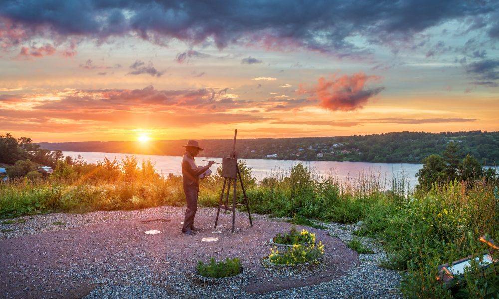 Плёс — идеальный образец тихой и уютной русской провинции, где постоянно проживает около 2 000 человек. В город даже запрещено въезжать на автомобиле, если вы тут не забронировали номер в отеле. Здесь у вас точно получится перенестись на пару столетий назад, отдохнуть от ритма мегаполиса, встретить потрясающие рассветы и проводить закаты, насладиться пением птиц и золотыми пейзажами.