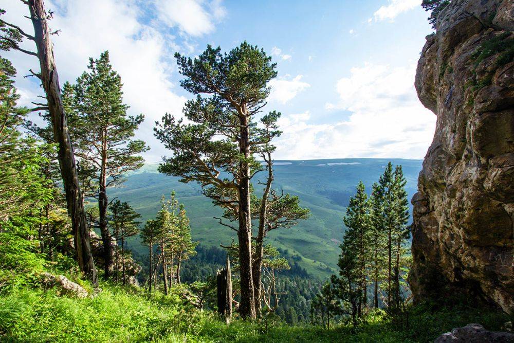 Верховье реки Курджипс: во время прогулки здесь мы посмотрели на плато Лаго-Наки с высоты 1700 м. Понаблюдали, как сквозь облака его освещают лучи солнца. Прошли через пихтовый лес и устроили пикник наедине с природой.