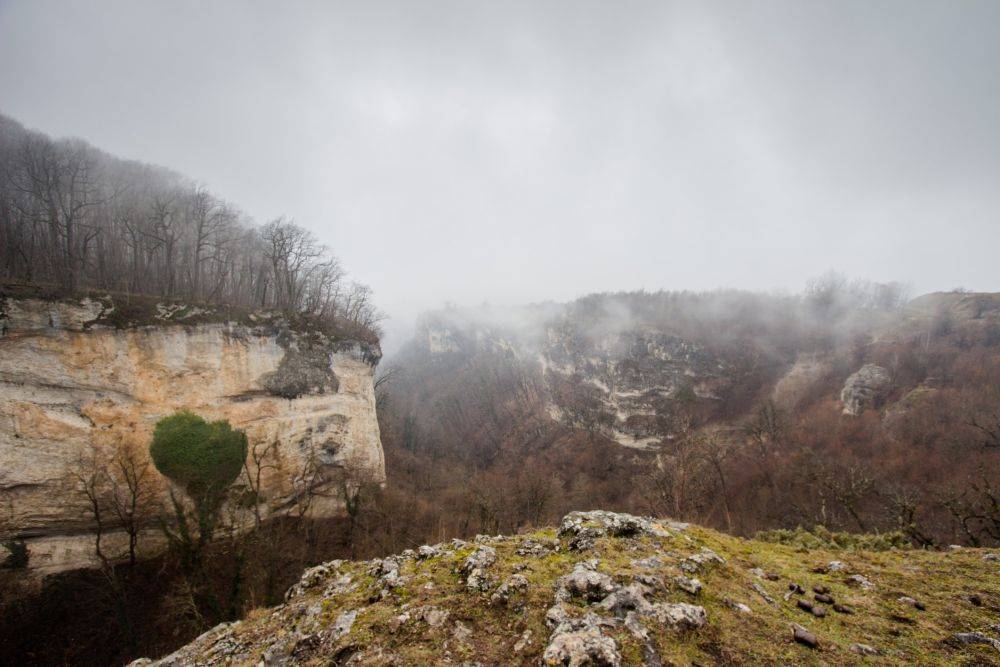 Ущелье узкое и глубокое, скалы — выше 400 метров. А вокруг — вечнозеленые деревья, самшит, можжевельник, тик, кусты боярышника. Здесь можно погулять, а можно проехать на ярком экскурсионном поезде, который ходит по узкоколейке.