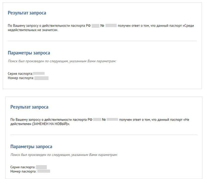 Выполненная проверка по серии и номеру выдаст один из вариантов ответа: