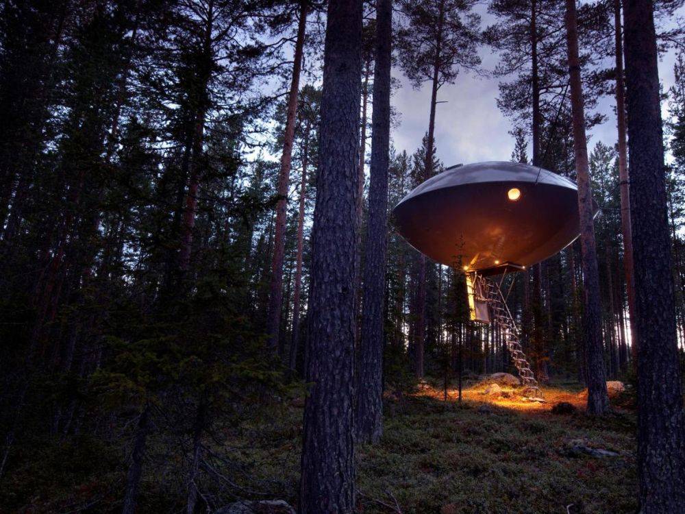 Treehotel ― современный отель с номерами, оборудованными высоко в густых кронах деревьев в лесу близ шведской деревни Харадс. Сочетая в себе современную архитектуру и причудливые формы, этот отель находится всего в 50 км от полярного круга и считается отличным местом для отдыха среди деревьев.