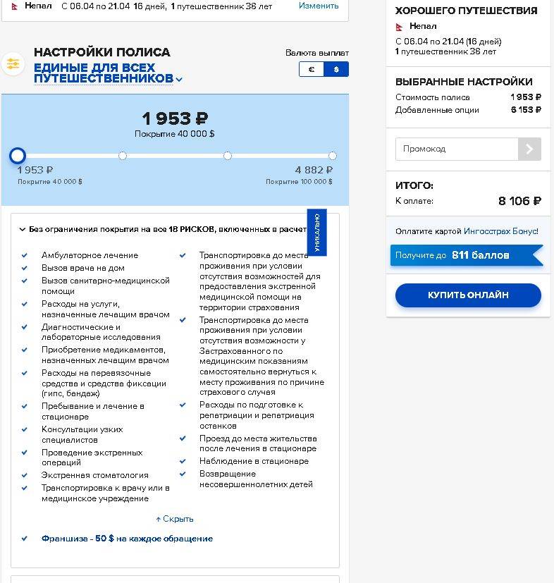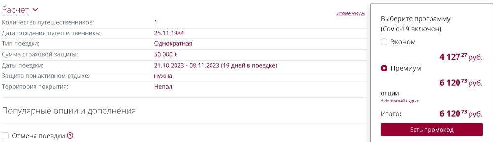 Самый недорогой вариант страховки в путешествиях для походов и треккинга из того, что мы нашли. И кстати единственный вариант российской страховки который пришлось проверить в условиях похода – в нашем случае страховка сработала отлично. После обращения в страховую через пару часов после переписки и двух звонков участник с трека к Эвересту ( с высоты 4700 м ) уже летел на вертолете в Катманду. Остальные страховые пока не приходилось проверять как работают.