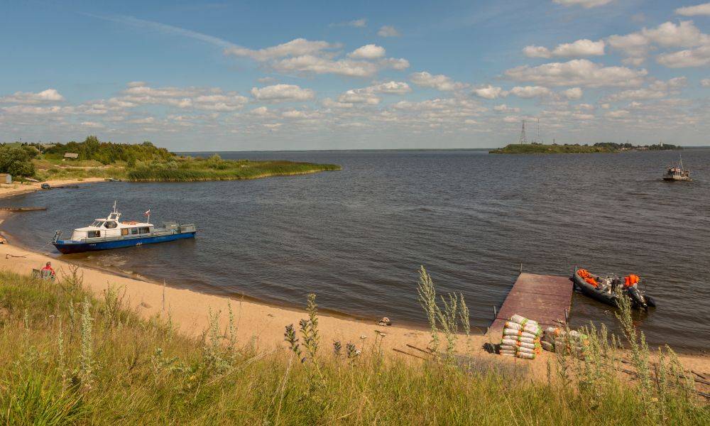 Самолётом также можно сначала добраться до Пскова (цена билета — от 8 200 рублей*). Далее автобусом или такси до деревни Толбица и катером до островов.
