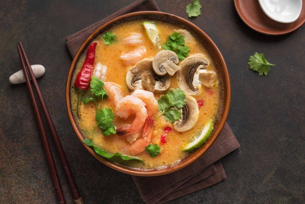 Родиной знаменитого на весь мир супа принято считать Мьянму, Лаос и Таиланд. Единого рецепта не существует — в каждой азиатской стране блюдо готовят по-своему, и каждый повар добавляет в него авторские нотки. Оригинальный Том Ям отличался от того, к чему мы привыкли сегодня. Это был простой и дешёвый суп на прозрачном бульоне, в ход шло всё, что было под рукой — мясо курицы, рыбы и даже лягушек. В XX веке туда стали добавлять кокосовое молоко и креветки, эта версия супа получила название Том Ям Кунг. В Таиланде считают, что блюдо обладает целебными свойствами и может лечить болезни. Ещё бы: лайм, лимонная трава, перец чили, наваристый бульон и остальные ингредиенты — кладезь витаминов и микроэлементов.