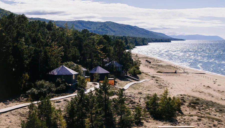 Пляжный курорт расположен на берегу Байкала в Бурятии, в двух часах езды от аэропорта Улан-Удэ. Здесь можно разместиться в домиках на пляже или в лесу. Общий дом приемов объединяет гостей за одним столом: блюда готовят из фермерских продуктов, подают в формате общего ужина.
