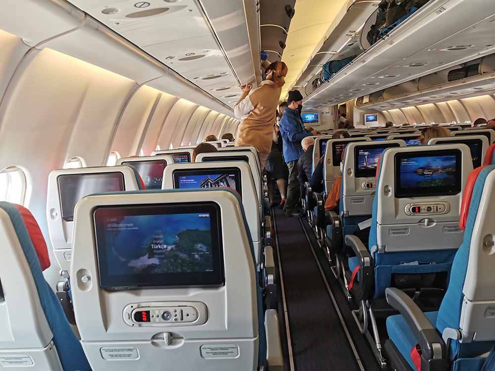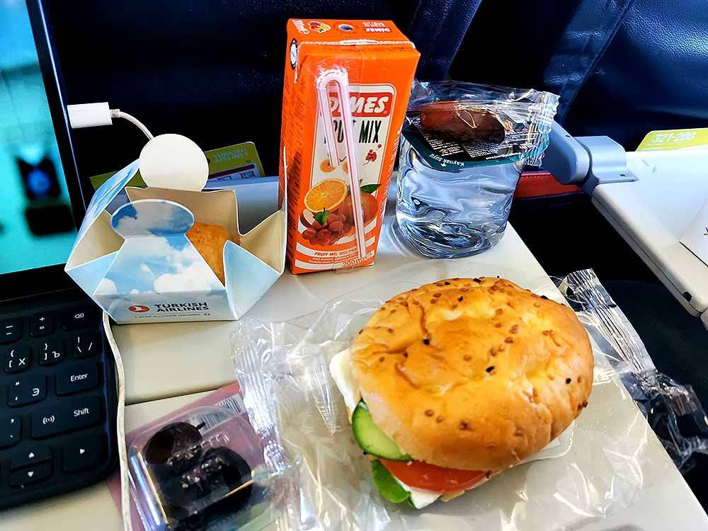 Мы сначала летели из Москвы до Стамбула, потом – до Измира. Расстояние между Стамбулом и Измиром — примерно на час полёта. И за этот час успевают разнести еду и собрать мусор.