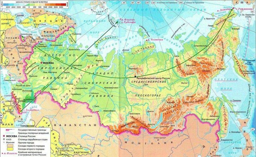 Территория Российской Федерации составляет 18 млн км², включает 5 климатических и 11 часовых поясов. Страна граничит с Евросоюзом, Китаем, Монголией, Странами СНГ и Соединенными Штатами Америки.