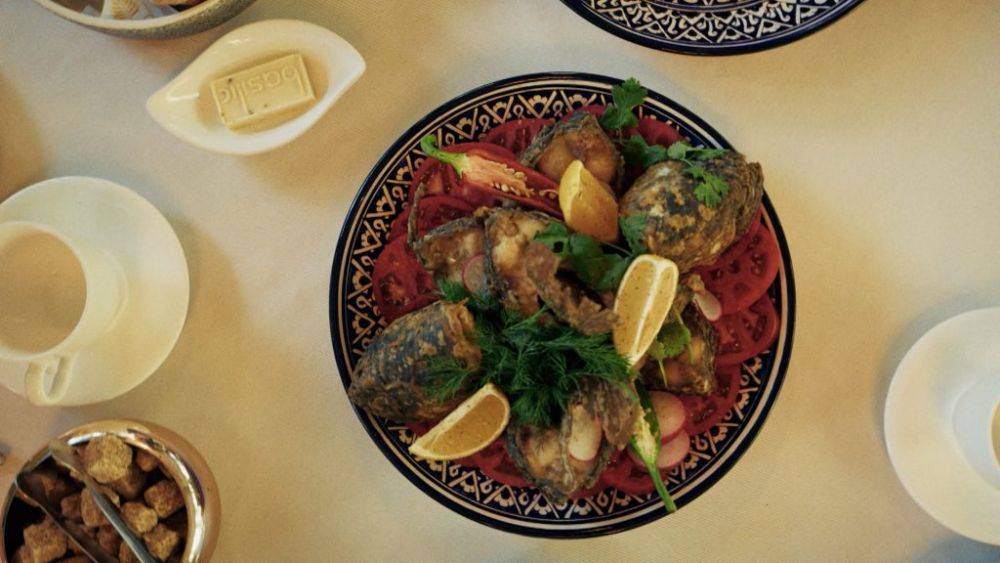 Если думаете, что в Средней Азии рыбу не уважают, вы просто не были на ташкентских рынках. Здесь рыба — неотъемлемая часть кухни. Выговорить название этого блюда сложнее, чем его приготовить, так как рецепт до смешного простой: свежего сазана нарезают на стейки, обжаривают в казане на хлопковом масле до золотистой корочки, добавляют лук, специи — и вуаля, готово.