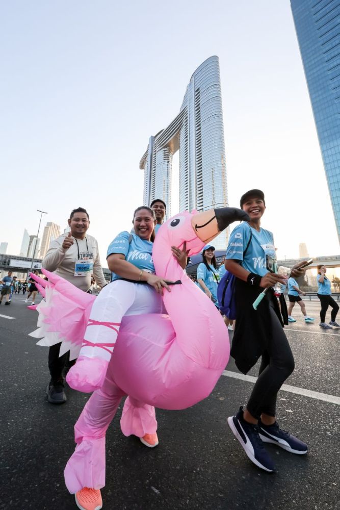 Организаторы также подготовили разнообразную развлекательную программу. В преддверии «Ид аль Этихад» (Дня Союза ОАЭ) стартовая зона была украшена флагами страны, а воздушное шоу моторных парапланов стало ярким элементом церемонии. В стартовых зонах были размещены LED-инсталляции и выступали барабанные коллективы, а музыкальное сопровождение обеспечивали диджеи UNTOLD при участии ведущих Криса Фэйда и Кэти Овери. По маршруту участников приветствовали оркестры, артисты на ходулях и цирковые группы, а на финише их ожидали охлаждающие распылители, арки из пузырей и праздничные маскоты.