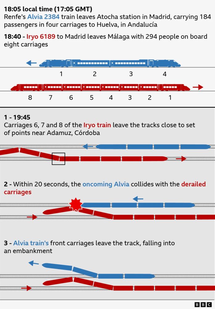 В воскресенье, 18 января, новости потрясла серьезная авария на юге Испании: поезд Iryo, следовавший из Малаги в Мадрид, сошел с рельсов недалеко от города Адамус (провинция Кордова) и пересек пути, по которым шел встречный состав Renfe. По данным властей, 43 человека погибло (хотя цифра пока неточная – на месте происшествия продолжают работать спасатели) и более 120 человек пострадало.